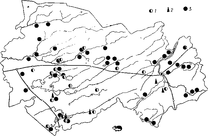 Распространение джунгарского (1), барабинского (2) хомячков и обыкновенного хомяка (3).