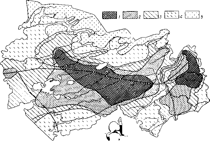 Размещение и численность светлого хорька (плотность выражается количеством хорьков, добываемых на площади в 100 тыс. га).