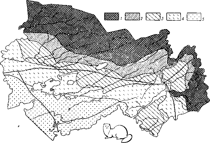 Размещение и численность колонка (плотность выражается количеством колонков, добываемых на площади в 100 тыс. га).