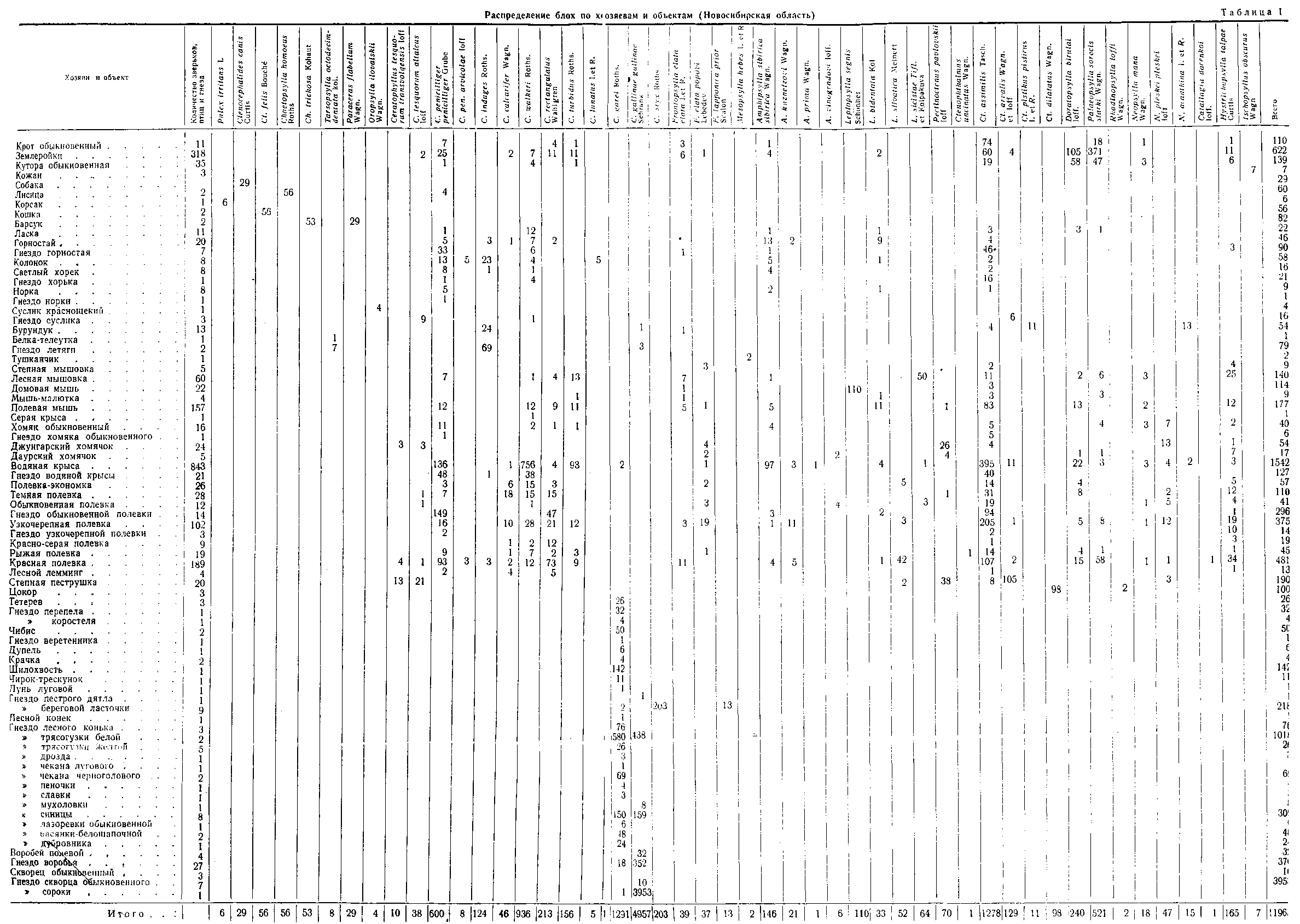 Как и в материалах Иоффа и др. (1959: 149), в наших сборах номинальный подвид по обилию доминирует над вторым, причем численность первого из них превышает численность С. p. arvicolae в 75 раз. Среди самцов блох этих подвидов у нас также имеются переходные формы. То же самое можно сказать о подвидах Ceratophyllus tesquorum, если отбросить данные численного соотношения между подвидами имеющихся в нашем материале блох. Последнее мало выразительно и не дает четкого представления о доминирующем здесь подвиде (С. t. transvolgensis — 20 экз., С. t. altaicus— 38).