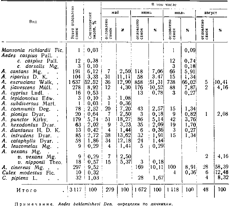 Соотношение численности комаров отдельных видов изменяется не только в течение одного сезона, но и в отдельные годы.