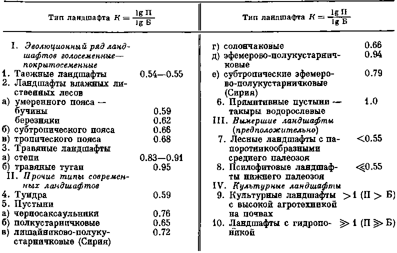 Значение К (степени прогрессивности ландшафта) для основных типов ландшафтов (по: Перельман, 1973)