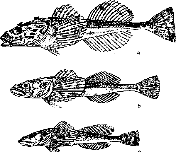 А — Myoxocephalus quadricornis; Б — Myoxocephalus quadricornis var-lonnbergi; В — Myoxocephalus quadricornis var. onegensis.