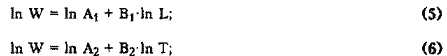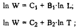 Для оценки коэффициентов A1, А2, B1, В2 уравнения (3) и (4) логарифмируют, приводя к