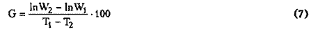 В трофических и продукционных расчетах часто используют удельные суточные приросты [Forsythe, Van Heukelem, 1987]. Применительно к кальмарам удельные суточные линейные и весовые приросты рассчитывают по 30-дневным интервалам по формуле: