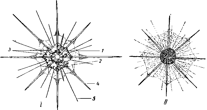 Различные формы лучевиков. / — Acantometra elastica; // — Lithoptera elegans: