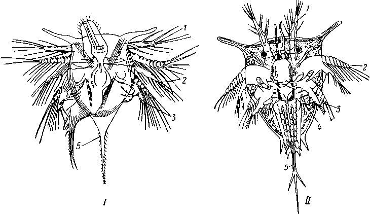 Личиночные фазы Balanus. I — науплиус; II — метанауплиус: