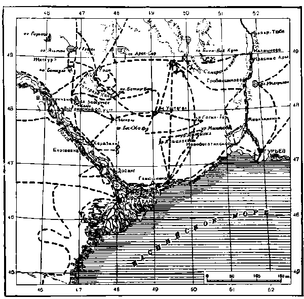 Некоторое исключение из этого составляют лишь окраинные части обширного массива песков Северного Прикаапия, как, например, Нарынские и левобережные астраханские пески, площадью около 1 млн. га. Что касается остальной, значительно большей части (около 4 млн. га), то она до настоящего времени исследована очень мало, а в отдельных районах даже совершенно не изучена. Это обстоятельство определяет значение предпринятых исследований, которыми автор стремился, по мере сил и возможностей, восполнить существующий пробел в познании природных особенностей песков Северного Прикаспия.