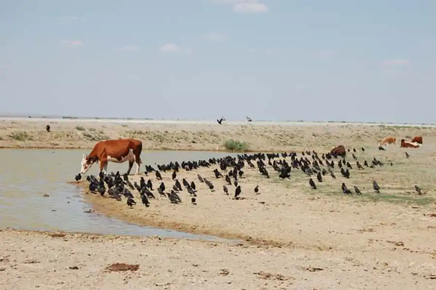 Еще П. И. Рычков (1762) писал: «Рын-пески, от реки Яика к Волге, то есть в правую сторону, ближайшее их расстояние дни с два;... и кочуют тут калмыки... Сие песчаное место окружено немалым солончаком и так велико, что в то время, когда Волга разлив свой имеет, до десяти тысяч калмыцких кибиток с их перекочевками вмещаются и бывает у них тут наилучшее и славное кочеванье. Близ солончака в колодезях вода горькая, солоноватая, а внутри оных песков вода сладкая, и так близко, что малые робята руками ее добывают». «Сии места (степные пески, по выраженью Рычкова. — Т. Я.) у кочующих народов на зимние их кочевья признаются способными, потому что снегу глубокого на них не бывает, и сходит он тут ранее, а трава во многих, а паче в нижних местах, и между оными родится».