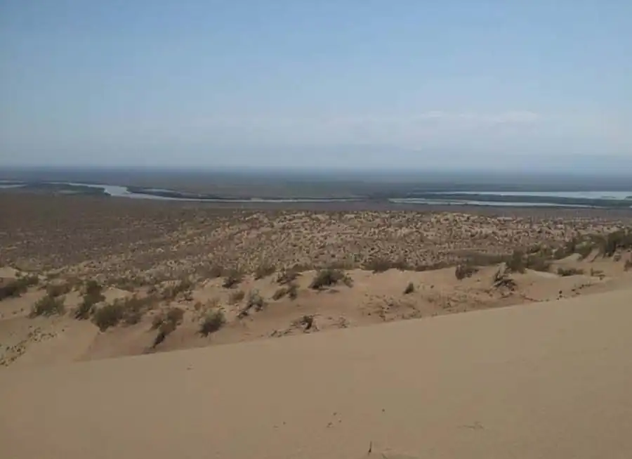 Рельеф приречной равнины, расположенной между массивами песков и долиной р. Урал, южнее 49° с. ш., имеет также волнисто-грядовой характер.