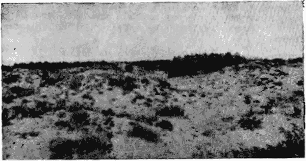 Общий вид Нарынских бугристых песков. Позади сосновые культуры в котловинах (дача Шаскус).