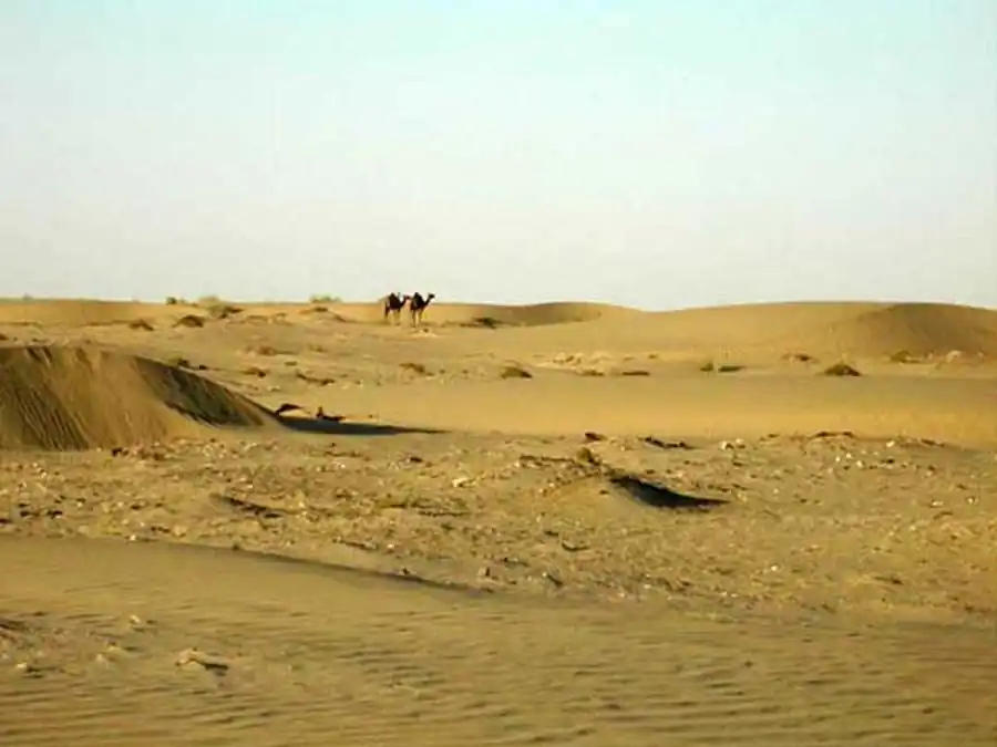 Только в увлажненных низинах, на дне заброшенных кудуков, рвов, а также в котловинах больтеков встречаются одиночные деревца тополя гибридного, тополя серебристого лоха и кусты ивы каспийской.