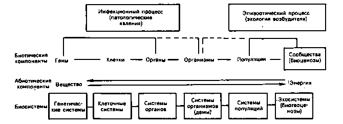 Схема «структурной организации» природно-очаговой инфекции (по: Бакулов, Макаров, 1990, фрагмент):