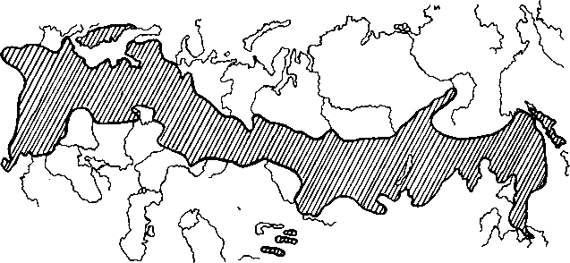 Ареал таежного клеща Ixodes persulcatus (по: «Таежный клещ...», 1985, с изменениями)