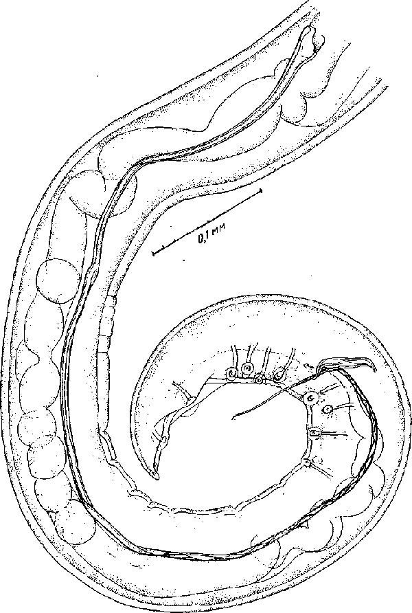 Анальное отверстие расположено в 0,16 мм от заднего конца тела.