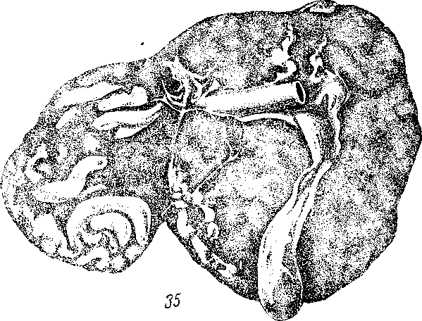 Обызвествленные желчные ходы печени овцы, пораженные фасциолезом (по Joest)