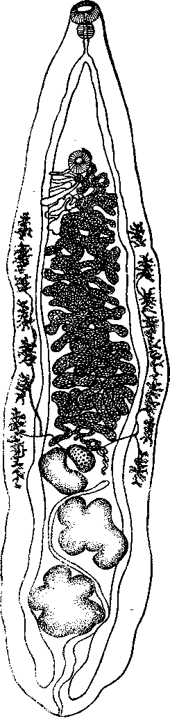 Opisthorchis felineus (Rivolta, 1884) (по Баркеру, 1911)