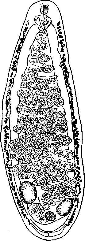 Яйца с толстыми оболочками, без крышечек, с вполне развившимися мирацидиями. Незрелые яйца желтовато-коричневые, 0.116 X 0.06 мм. Зрелые темнокоричневые, 0.136 X 0.068 мм.