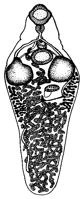 Platynosomum fallax Heiaegger et Mendheim, 1938 (по Гейдеггеру и Мендхейму, 1938)