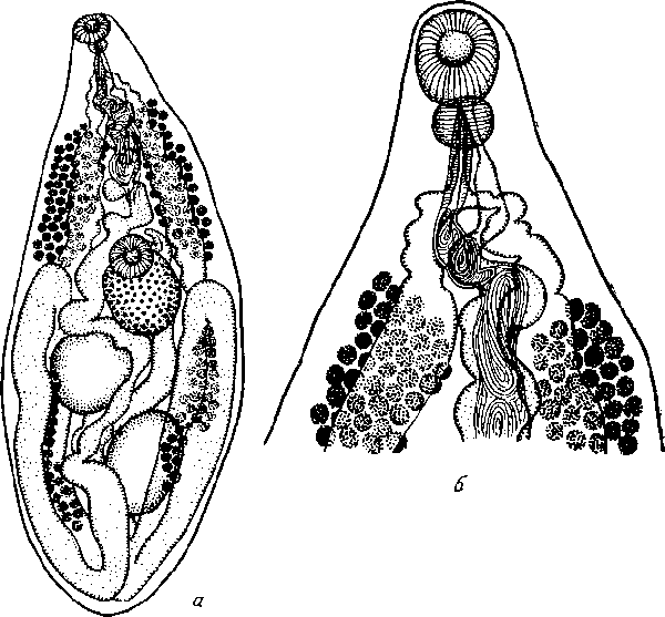 Семяприемник округлый, приблизительно одинакового размера с яичником, локализуется позади брюшной присоски, вблизи яичника. Желточники лежат главным образом латерально; они состоят из 16—17 розеток правильной формы, причем их распределение создает такое впечатление, что они образуют передний и задний полукруги. Передние границы желточников находятся непосредственно позади развилка кишечника, а задние — впереди слепых концов стволов кишечника. Неправильные завитки экстрацекальных петель матки достигают переднего края семенников или идут еще дальше кпереди; остальные участки матки также неправильно извиваются. Яйца достигают 0,032—0,035 X 0,016— 0,018 мм.