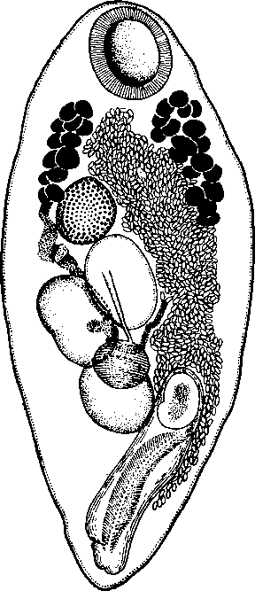 Половая бурса представляет собой вытянутый орган, расположенный ближе к левой стороне задней части тела и открывается медианно, субтерминально, на заднем конце тела на вентральной стороне. Бурса достигает 0,315—0,462 мм в длину при ширине 0,067—0,109 мм. т. е. равна приблизительно 7з общей длины тела трематоды. Внутри половой бурсы у ее переднего конца расположен яйцевидный семенной пузырек, достигающий около 74 длины половой бурсы. Задняя часть семенного пузырька соединяется с простатической частью, а она, в свою очередь,—с собственно циррусом. Простатические железы занимают пространство между стенкой половой бурсы, простатической частью и циррусом.