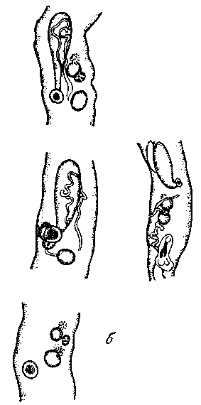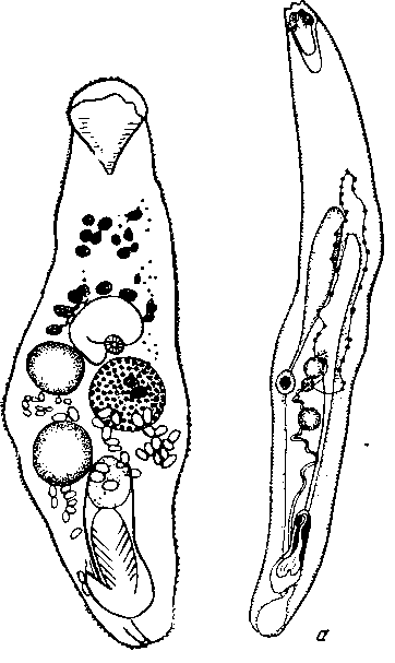 a — общий вид мариты; б — вариации в расположении половых желез и пищеварительной системы