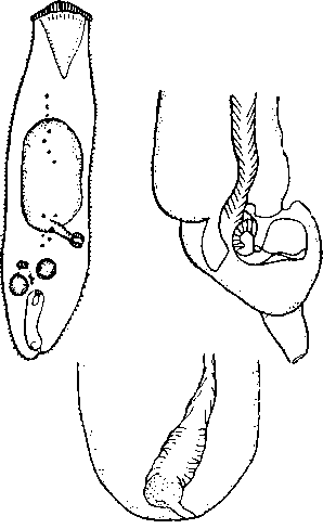 Экскреторный пузырь открывается непосредственно позади полового отверстия.