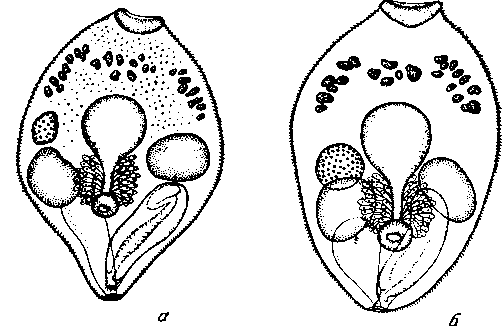 a — личиночная форма Pr. aculeatus; б — личиночная форма Pr. uniporus