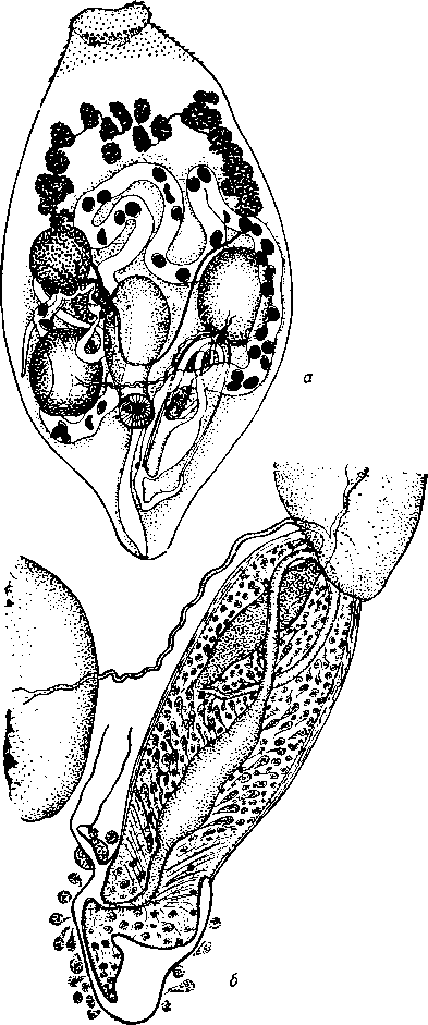 a — общий вид мариты; б — семенники и половая бурса