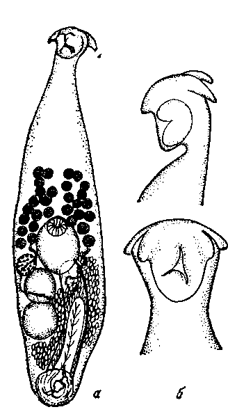 а — передний фиксаторный орган; б — общий вид мариты