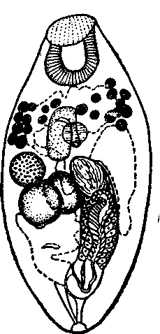 Rhipidocotyle transversale Chandler, 1935 (по Согандарес-Берналу и Хуттону, 1959)