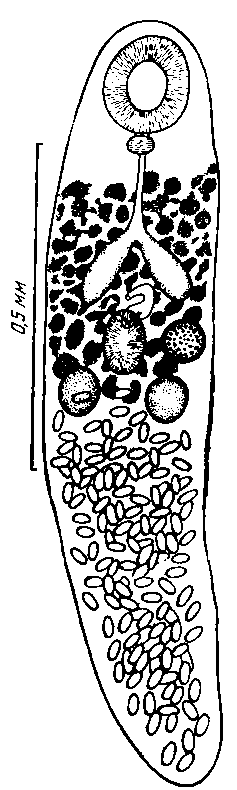 Метратерм развит слабо. Яйца с плотной оболочкой, снабжены крышечкой, достигают 0,027—0,030 мм х 0,039—0,045 мм; ко времени яйцекладки содержат вполне развитые эмбрионы.