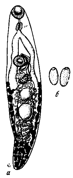 Яйца овальные, с тонкой светло-коричневой оболочкой и крышечками; размер их достигает 0,032—0,034x0,017—0,118 мм.