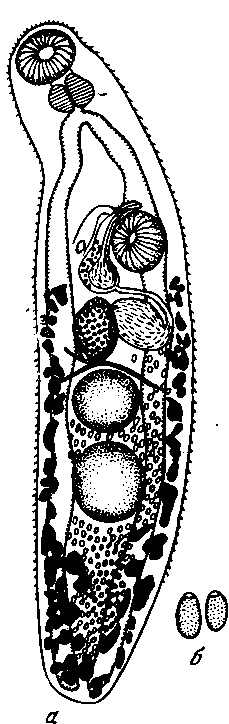 Яйца имеют овальную форму, снабжены крышечкой и тонкой светло-коричневой оболочкой. Они достигают 0,027—0,036 мм длины и 0,016— 0,018 мм ширины.