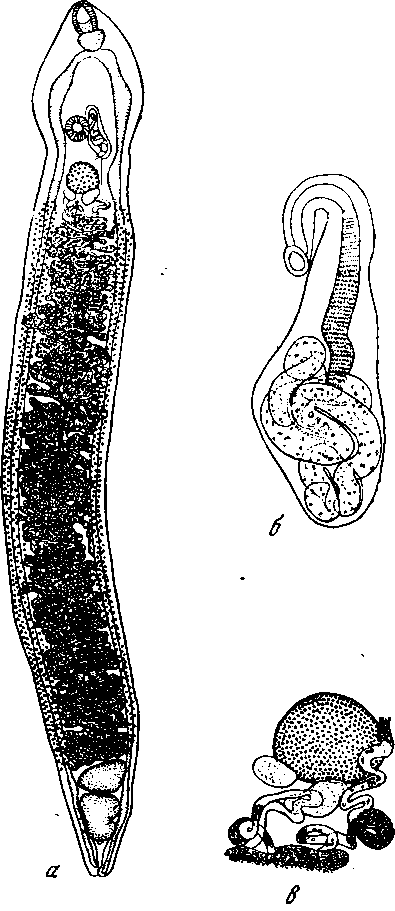 а — марита; б — половая бурса; в — комплекс женских органов