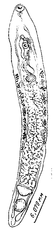 Telorchis pseudaculeatus (Dollfus, 1929) (по Кабальеро и Бренес, 1957)