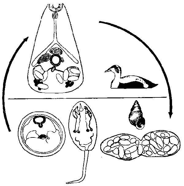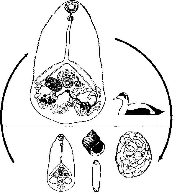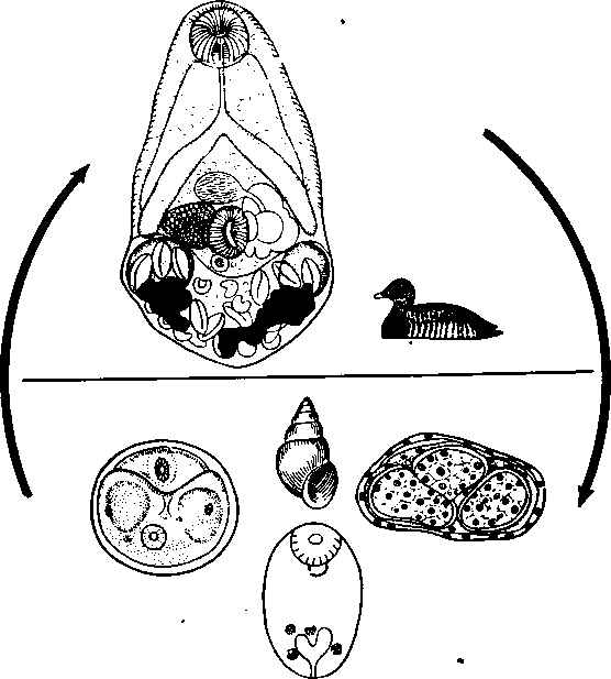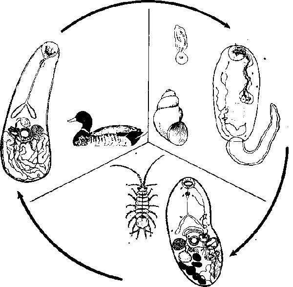 Циклы развития, протекающие с выпадением дополнительного хозяина, следует рассматривать как вторично упрощенные и имеющие ряд градаций.