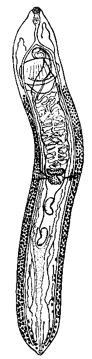 На дне брюшной присоски имеется своеобразный канал — мезаулюс, который тянется вдоль тела по прямому направлению и заканчивается на заднем конце. Его функция неясна. Префаринкс короткий и ведет в фаринкс, имеющий 0,25— 0,38 мм в поперечном диаметре. Пищевод достигает 0,35 мм длины. Почкообразные семенники располагаются плотно один позади другого в задней половине тела и имеют 0,4—1,5 мм длины. Округлый, мелкий яичник лежит по средней линии перед семенниками. Желточники состоят из мелких фолликулов. Матка наполнена многочисленными яйцами, достигающими 0,12 X 0,06 мм.