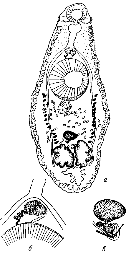 a — марита; б — концевой половой аппарат; в — комплекс женских органов