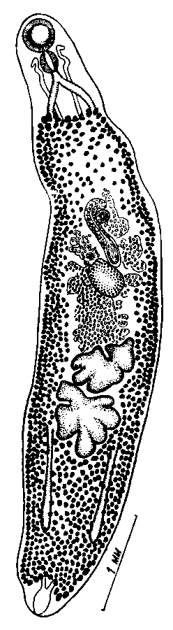 Изучался один экземпляр, длина тела которого достигала 7 мм при ширине 1,5 мм. Овальная ротовая присоска достигает 0,30 X 0,26 мм; удлиненный фаринкс 0,24x0,15 мм.