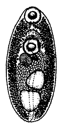 Половая бурса длинная, достигает 0,216—0,240 мм длины при ширине 0,036—0,040 мм. Она содержит крупный внутренний семенной пузырек, разделенный на две части, а также длинную простатическую часть и невооруженный циррус. Обычно проксимальная часть половой бурсы переходит за уровень заднего края брюшной присоски. Однако имеются случаи, когда половая бурса изгибается наподобие арки и вся располагается кпереди от брюшной присоски. Круглый яичник имеет размер, равный таковому брюшной присоски. Он располагается справа от брюшной присоски либо на одном с ней уровне, либо позади последней.