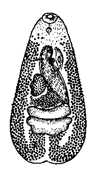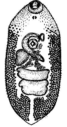 Брюшная присоска округлая, располагается на границе первой и второй третей туловища и имеет в диаметре 0,024—0,045 мм. Префаринкс хорошо выражен. Фаринкс округлый, 0,030 мм в поперечнике. Пищевод имеется. Кишечные ветви простираются до заднего конца тела параллельно боковым стенкам туловища. Семенники поперечно-вытянутые, слегка лопастные, располагаются один впереди другого во второй половине тела, плотно прилегая друг к другу и занимая все пространство между кишечными ветвями. Яичник слаболопастной, 0,096—0,120 мм в поперечнике, располагается справа перед передним семенником. Половое отверстие открывается медианно или несколько сдвинуто влево перед брюшной присоской. Бурса цирруса веретенообразной формы, справа огибает брюшную присоску и, расширяясь, идет косо справа налево и вниз. Конец бурсы заходит за левую часть переднего края переднего семенника.