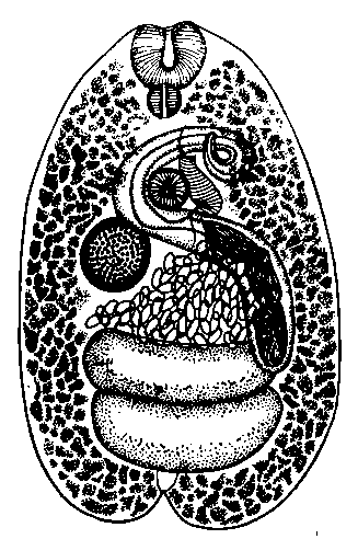 Ротовая присоска открывается субтерминально и достигает 0,099 мм в диаметре. Фаринкс 0,034 мм в диаметре. Брюшная присоска имеет 0,059 мм в диаметре и расположена на расстоянии 0,111—0,166 мм от ротовой присоски. Кишечные стволы доходят до заднего конца тела. Половое отверстие расположено по средней линии тела, впереди брюшной присоски, на расстоянии 0,059—0,060 мм от нее.