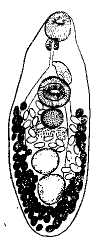 Матка содержит несколько овальных яиц с желтоватой оболочкой, 0,070—0,080 мм длины и 0,040—0,050 мм ширины.