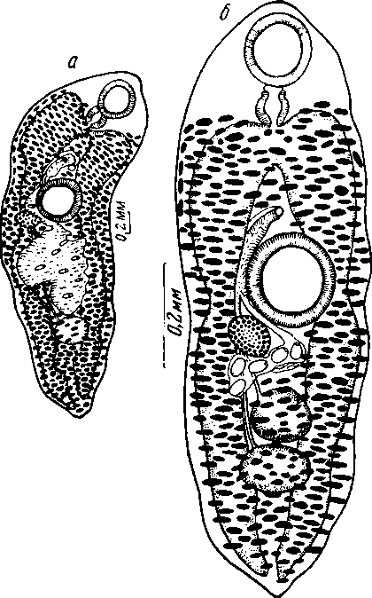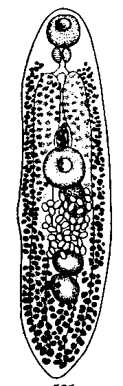 Проток семяприемника настолько короткий, что создается впечатление о том, что семяприемник опорожняется непосредственно в лауреров канал, который открывается дорзально, чуть вправо от медианной линии. Крупные желточные фолликулы окружают кишечные стволы по всей их длине. Они простираются с двух сторон от середины фаринкса до заднего конца тела, встречаясь по средней линии тела. Поперечные желточные протоки соединяются в желточный резервуар на уровне яичника. Размеры желточного резервуара 0,06—0,087x0,096— 0,16 мм.