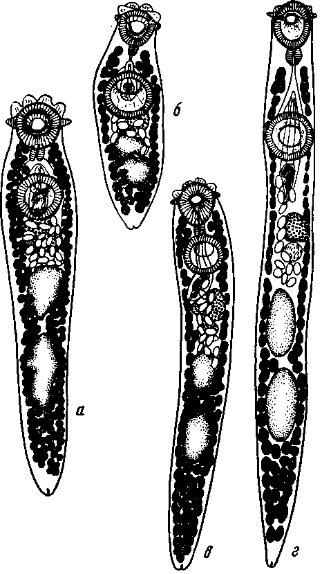 a — от Thymalltu thymallus; б — от Salmo alpinus; в — от Lota lota; e — от Cottus gobio