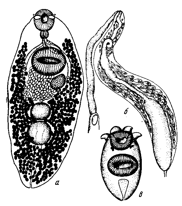 а - марита; б — половая бурса и вагина; в — незрелый экземпляр