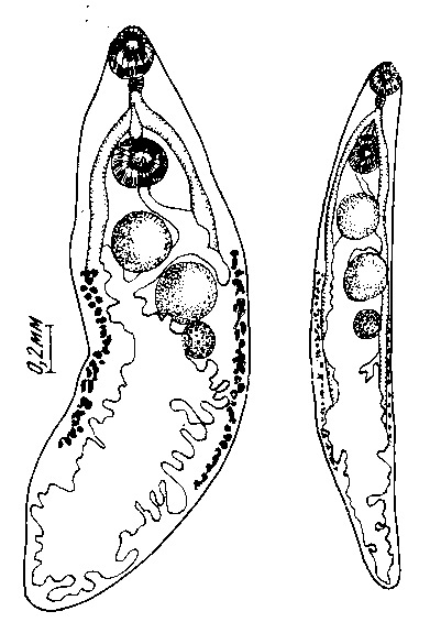 Описание вида (по Белопольской, 1954). Тело 2,5—3,1 мм длиной при максимальной ширине 0,56—0,7 мм на уровне семенников. Ротовая присоска меньше брюшной, достигает 0,16—0,22 мм в диаметре. Диаметр брюшной присоски 0,24—0,26 мм. Фаринкс круглый, 0,6 мм в диаметре. Кишечные стволы простираются почти до заднего конца тела. Семенники крупные, цельнокрайные либо слаболопастные, 0,26—0,31 мм в диаметре, располагаются наискось один по отношению к другому, немного позади брюшной присоски.