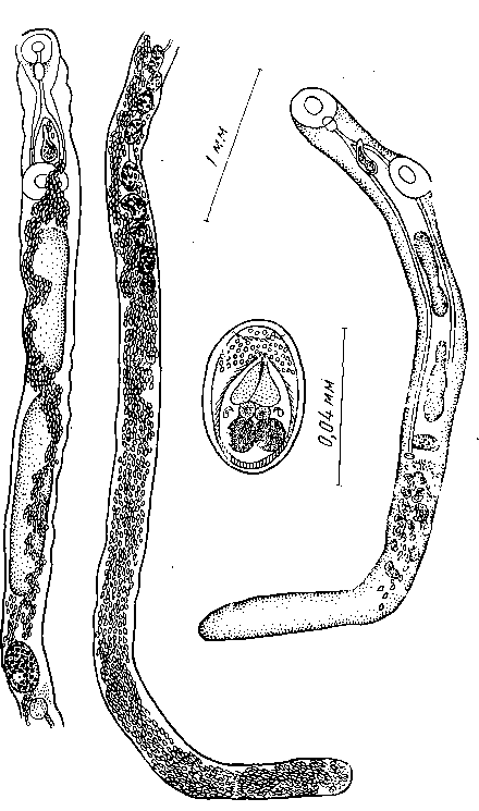 Экскреторное отверстие расположено терминально. Полностью развившиеся яйца темно-коричневые, с толстой скорлупой, с крышечками и полностью развитым мирацидием, обладающим стилетом и двумя большими зернистыми овальными пузырьками. Яйца 0,037—0,047 мм длиной и 0,025—0,032 мм шириной.