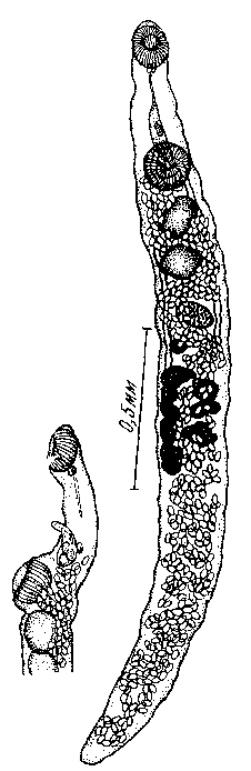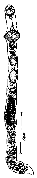 Половая бурса вытянутой грушевидной формы, 0,13—0,15 мм в длину и 0,04—0,05 мм в ширину, она содержит скрученный семенной пузырек, семяизвергающий проток и выворачивающийся циррус.